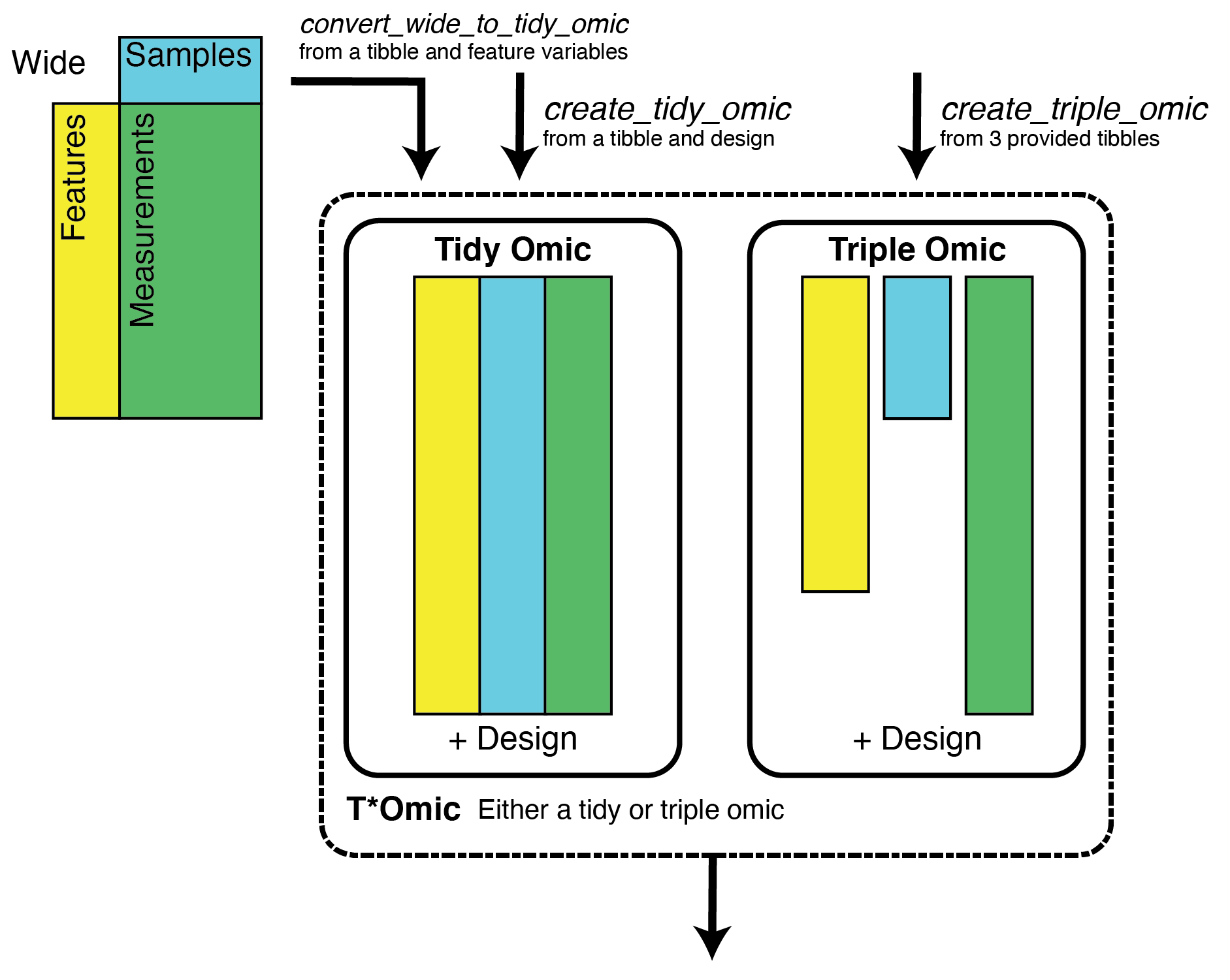 The first problem we’ll consider is that genomics data analysis involves a lot of shuffling between various forms of wide and tall data and incrementally tacking on attributes as needed. Romic aims to simplify this process, by providing a set of flexible data structures that accommodate a range of measurements and metadata and can be readily inter-converted based on the needs of an analysis.